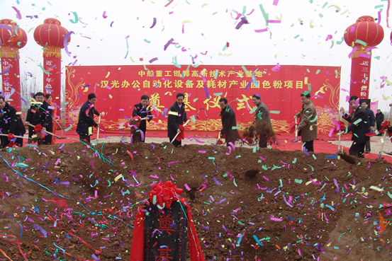 去年6月3日,中船重工集团公司与河北省政府签订了中船重工邯郸高新技术产业基地合作协议,建设汉光办公自动化设备及耗材产业园项目,被列为河北省重点产业支撑项目,同时被列为邯郸市立市兴市项目。在邯郸市委市政府的大力支持下,在高开区管委会的具体指导下,我厂紧张筹备,精心策划,筹措资金,完善各种手续,先期进行投资兴建墨粉生产线项目。该项目总投资1.2亿元,占地60亩,本期投资建设为我厂第四条墨粉生产线,建成后将形成年产墨粉3500吨,彩粉1500吨的生产能力。年销售收入达到3.6亿元,实现利税3000万元,出口创汇将有更大的突破与增长。