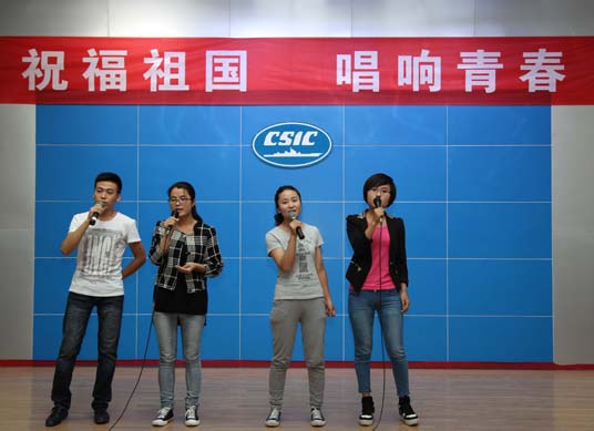 九月二十九日下午,公司团委在第四会议室举办了“祝福祖国,唱响青春” 国庆联谊活动。今年新进厂的学生和部分团员青年参加了这个活动。活动在耗材公司员工的十人小合唱《我爱你,中国》中拉开了序幕。参加联谊的每个员工都饱含深情,激情献技。活动中间还穿插了歌曲接龙、击鼓传花等游戏环节,全场观众气氛都非常的活跃,被选中的观众也都上台即兴表演了精彩的节目。联谊活动在《小苹果》的欢快乐曲中圆满结束。